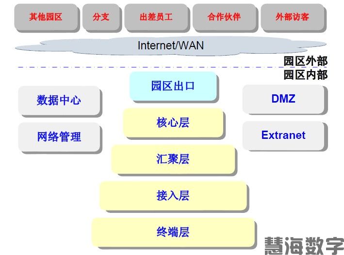 园区网络应具备有效的安全控制。按业务、按权限进行分区逻辑隔离,对特别重要的业务采取物理隔离。